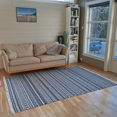 Lys grønt teppe fra IKEA! Helt og pent men kan sikkert ha godt av en rens. Fargen vises på bildene i forskjellig lys.