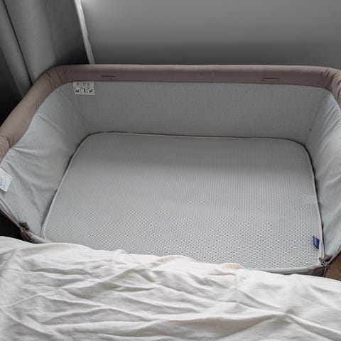 En side kan åpnes for enklere tilgang til barnet. Nettingpanel på siden gir lufting og innsyn.