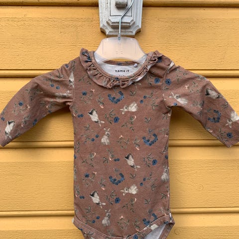 Body og buske fra Name It i str. 56. Lappene er klippet av, men er ganske sikker på at plaggene er i ull og viskose. Hentes i Løten.