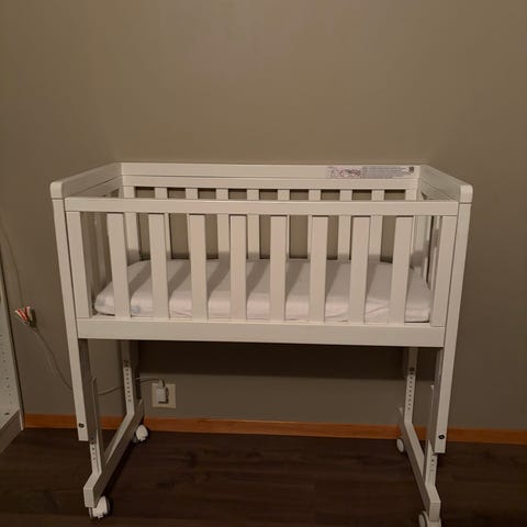 Selger helt super vugge til baby. Praktisk med god hjul (som kan låses) så gjør den lett å flytte på.