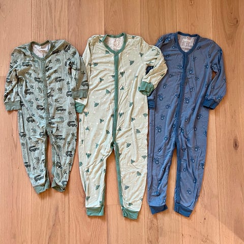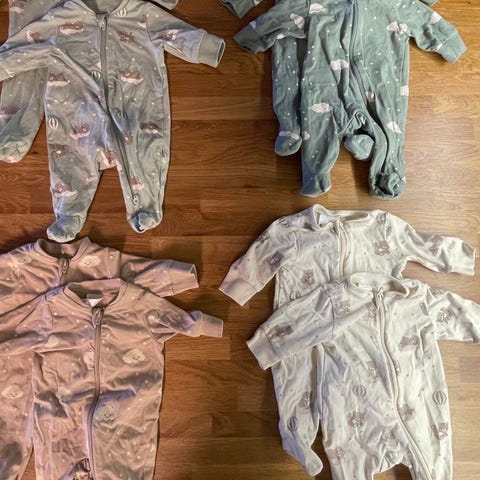 3 stk gode pysjer - str 92 - hele med praktisk glidelås helt ned.