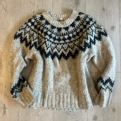 Nystrikket myk og deilig porcelain sweater selges. Strl xs. Strikket i dobbelt garn.
