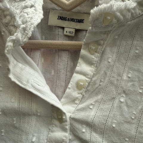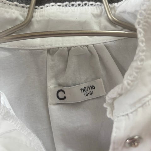 Name it bluse for barn i størrelse 116. Blusen er hvit og laget av bomull. Den har lange ermer, knappelukking foran og broderte detaljer ved halsen. Passer til jente og kan brukes til både hverdag og mer formelle anledninger.