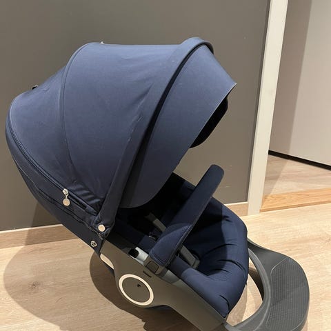 Settet består av en liggedel/bag med hette og madrass, samt en sittedel med integrert sele og frontbøyle.