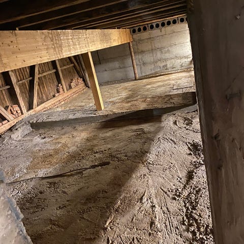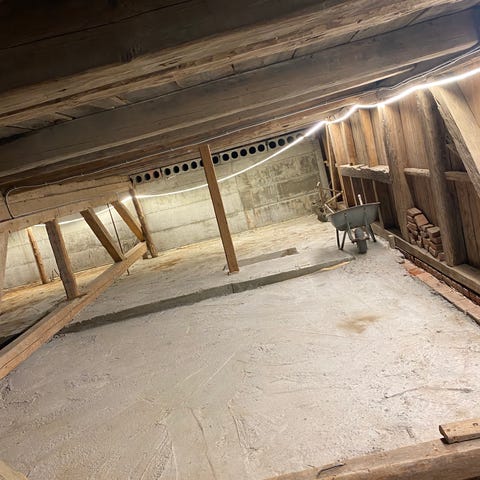 Betongfundamentert gulv på grunn og ringmur.