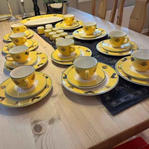 Snart påske,🐣! Selger lite brukt service med typisk påskemotiv,men kan selvsagt brukes hele året! Stått på hytta,men selges da må rydde opp,og trenger ikke da er alene! Brukt kun noen av delene sporadisk,så pent brukt. Pris på forespørsel,om man vil ha alt eller dele opp,fortrinnsvis i partall!!