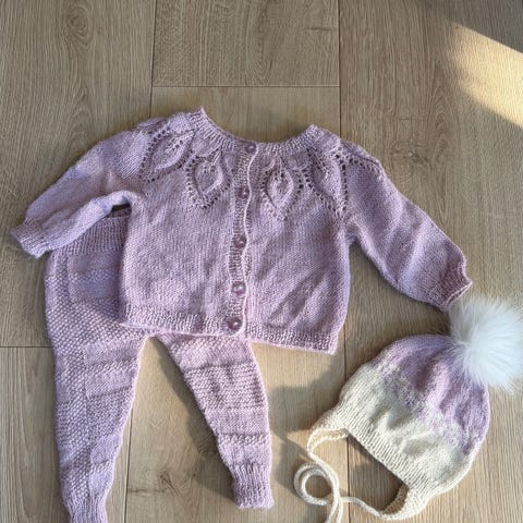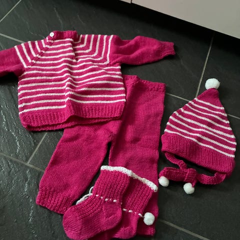 Strikkasett ca str 9-12 mnd