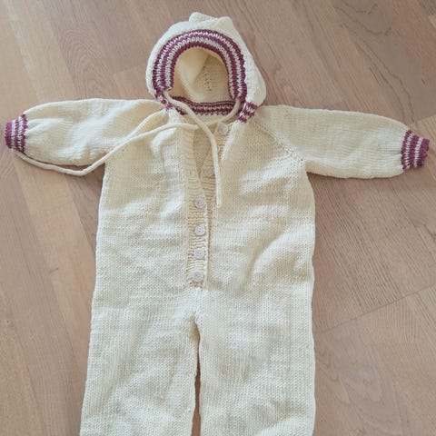 Justerbar strikk i livet og nydelige knapper. Bukse,jakke og lue i ull.