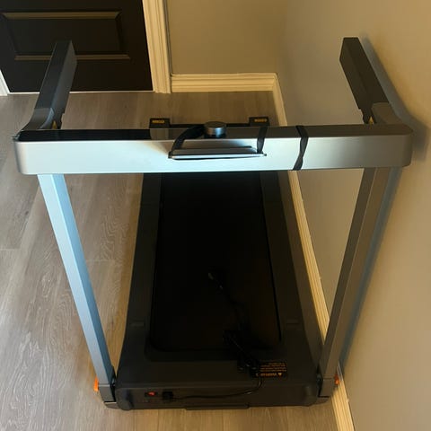 Tredemøllen har et rett og kompakt løpebånd med sikkerhetsbøyle foran. På fronten sitter et betjeningspanel med flere knapper og sikkerhetsnøkkel med snor. Det er integrert digitalt display som viser grunnleggende treningsdata som tid og hastighet.Opptil 12 km/t