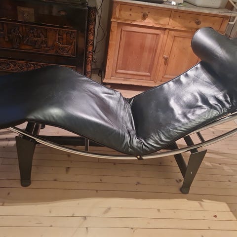 Deilig sjeselong i sort skinn. Selges pga plassmangel. Skinnet fremstår veldig pent.