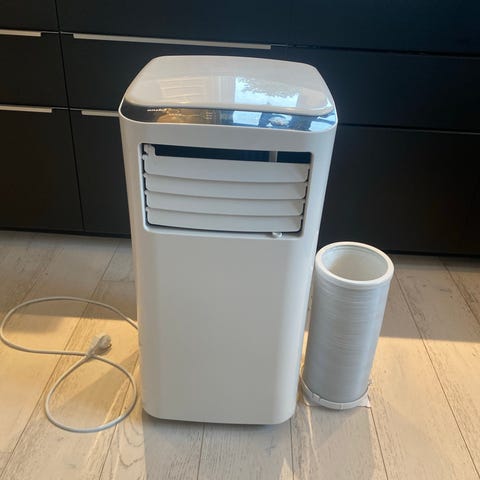 Clatronic CL 379 aircondition i sølvfarge. Enheten har digitalt display og betjeningspanel på toppen med flere innstillingsmuligheter. Frontpanel med luftutslipp øverst. Det følger med bruksanvisning og avløpsslange/rør som vist på bildet. Egnet for innendørs bruk til å redusere luftfuktighet i rom som kjeller, stue eller andre oppholdsrom. Driftsspesifikasjoner som kapasitet og effekt fremgår av bruksanvisningen til modellen CL 379.