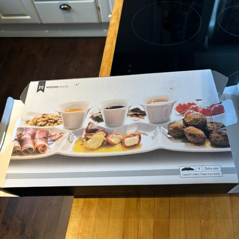 Selger ubrukt tapas-sett fordi vi ikke lager tapas...