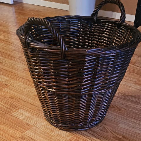 Kurv rektangulær flettekurv i rotting 70 lang og ca 50 bred.