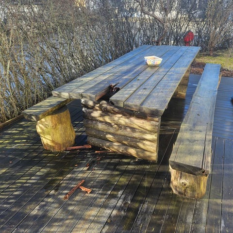 Høyt bord med solide bein gis bortl