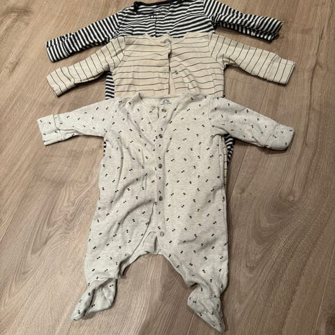 Ubrukte pysjer i størrelse 74. Blå stripete pysj er i størrelse 80 (81cm)