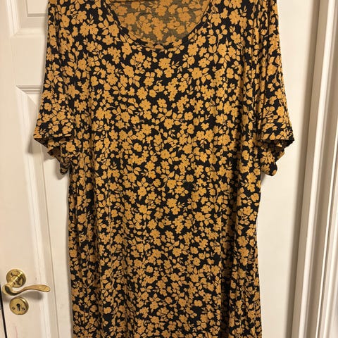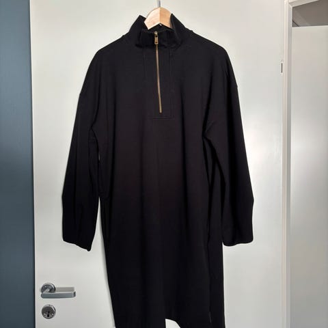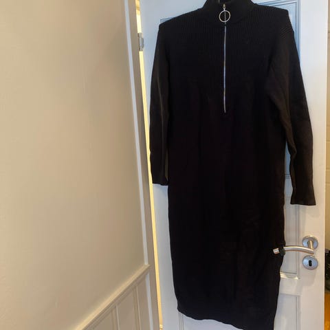 Ellos hverdagskjole for dame i størrelse XL. Kjolen er svart og laget i bomull. Modellen har korte ermer, glidelås foran og lommer i sidene. Passer som enkel hverdagskjole i en rett og komfortabel fasong.