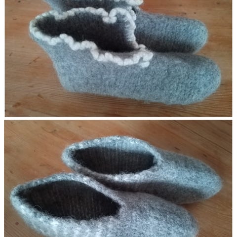Tovede tøfler, i ren ull, til voksne, laget av meg.