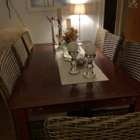 6 rottingstoler . Noen bruksmerker . Ellers solide og gode å sitte på.