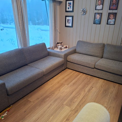 2 kjempegode ørelappstoler med pall og en 2,5 seters sofa. Hentes Måløy.