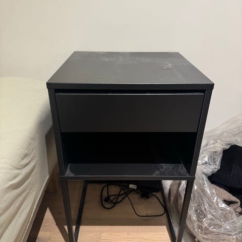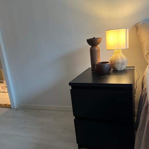 Gir bort et brukt nattbord (IKEA malm). Nattbordet var opprinnelig hvitt, men er malt i en pen, mørk rosafarge. Det er noen merker på topper av nattbordet, samt noen merker i den ene skuffen, se bilder vedlagt.