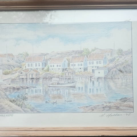 Litografi Ålesund havn av Kristoffer Helset 40x60cm. 300 kr. I plast med oppheng. Kan sende, kjøper betaler porto.
