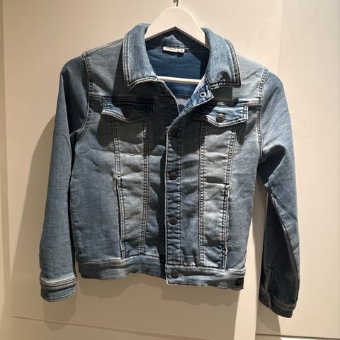 Nydelig, klassisk jakke i denim fra Zara, selges for kr. 250,-.