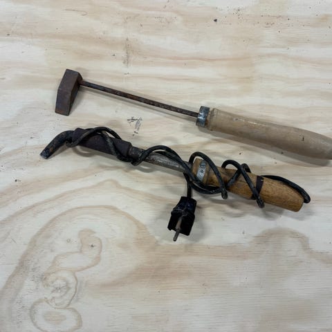 Hulltang for lær og belter metall med gule håndtak
