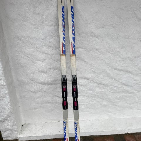 Madshus Glittertind fjellski i lengde 195 cm med Rottefella bindinger. Skiene har stålkanter. Feller medfølger.