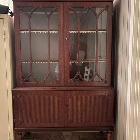 Bohus vitrineskap i tre med glassdører og glassider. Skapet har overskap med vitrinedel og underskap med lukkede skapdører for ekstra oppbevaring. Egnet til oppbevaring og utstilling av servise, glass, pyntegjenstander eller bøker i stue, spisestue eller andre oppholdsrom.