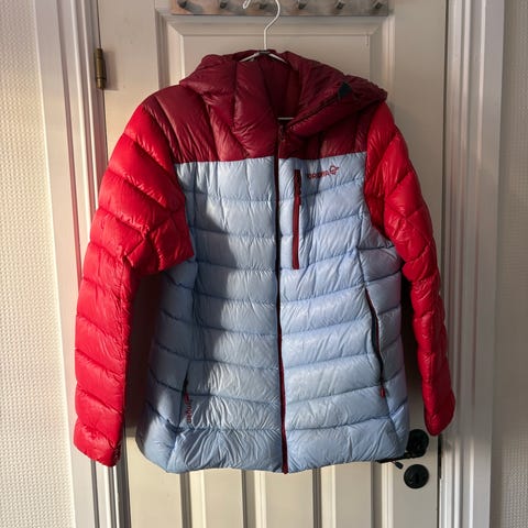 Norrøna dunjakke for dame i størrelse M. Fin ferskenoransje farge.