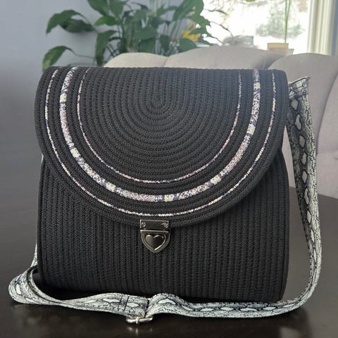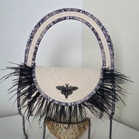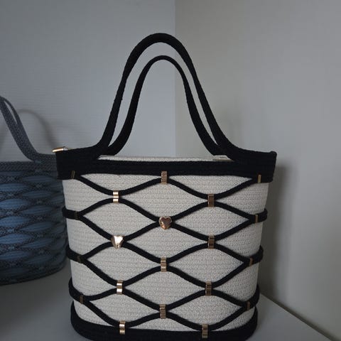 Denne vesken vil være et flott tilskudd til garderoben din. Det er et unikt plagg.