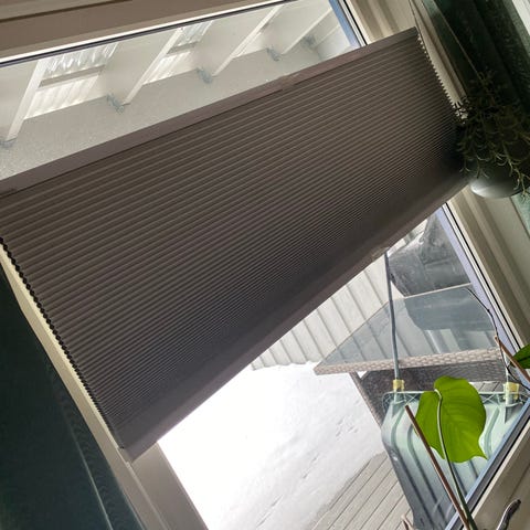 Grå plisségardin med hev/senk.