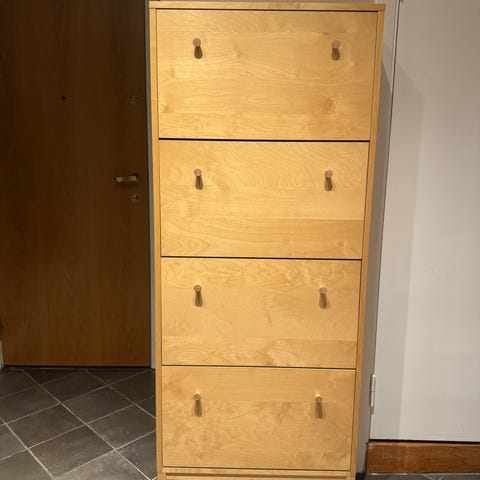 Skoskap med 4 skuffer. Bjørkefiner. I god stand.