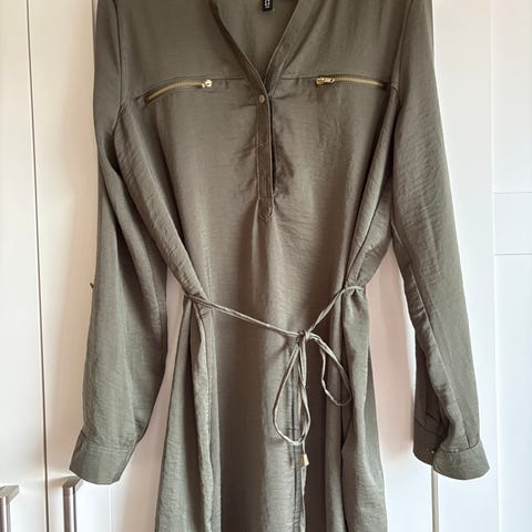 Fin mørkegrønn topp i gjennomsiktig teksturert stoff. Selges fordi den er blitt for stor for meg.
