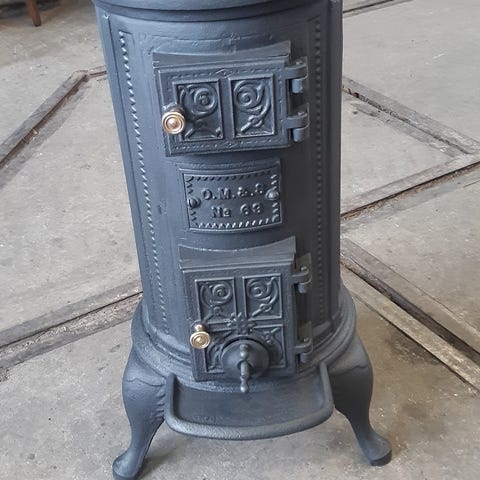 Til Salgs. Koieovn brakkeovn som tar liten plass . Med bredde på 27 cm. Høyde 100 cm. Denne er jo fin og se på. Kr 3500. Hentes på Grinder. Ovnen har koketopp.