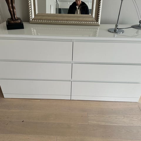 Hvit kommode med 6 skuffer. Dette gir stor og effektiv lagringsplass,