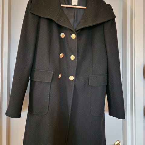 Selger en kåpe i ullmiks fra Zara. 53% Ull. Kjøpt i London fordi jeg hadde glemt jakke. Veldig lite brukt. Dette er en tynnere ullkåpe som passer perfekt å bruke nå som vi snart nærmer oss skiftet mellom vinter og vår.