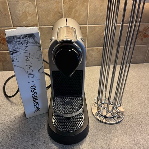 Pent brukt kaffemaskin selges da den ikke lenger er i bruk hos oss. Kommer med stativ til kapsler