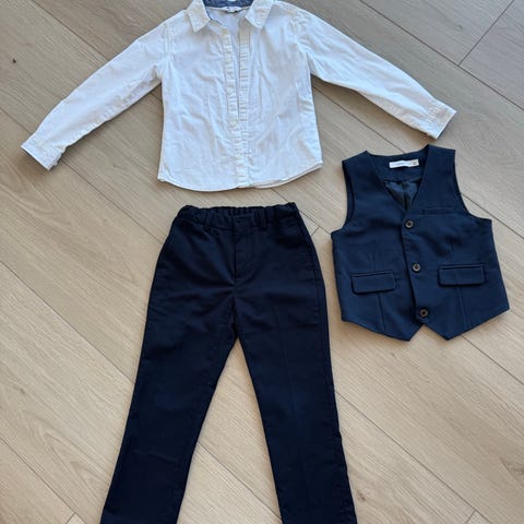 Dressbukse og vest fra nameit str. 140, med hvit skjorte str. 146.