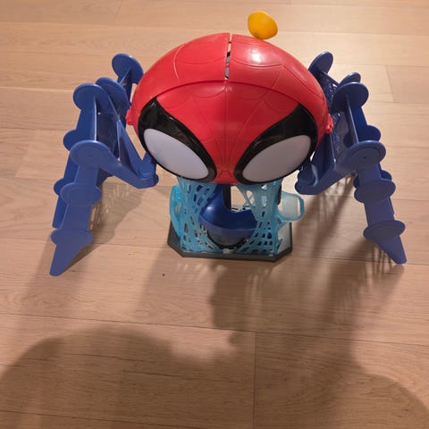 Spiderman/Spidey and his amazing friends-lekesett med flere figurer og kjøretøy. Settet inneholder blant annet Spiderman-bil, små kjøretøy og walkie talkies med Spiderman-motiv.