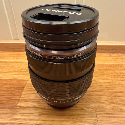 Olympus M.Zuiko Digital 14–42mm f/3.5–5.6 kamerazoomobjektiv i svart.