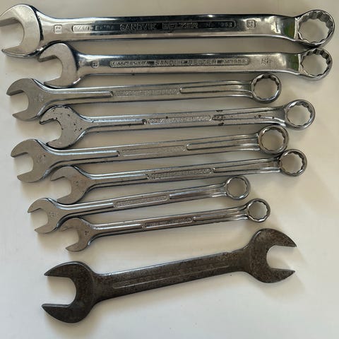 Verktøysett fastnøkler skrutrekkere og tapetkniv metall plast