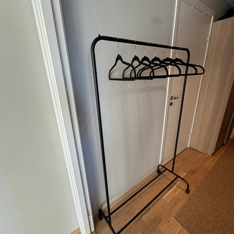 Fint klesstativ selges grunnet plassmangel. Usikker på hvor det er kjøpt og alder, men er veldig pent brukt, uten synlige merker. Selges 100kr.