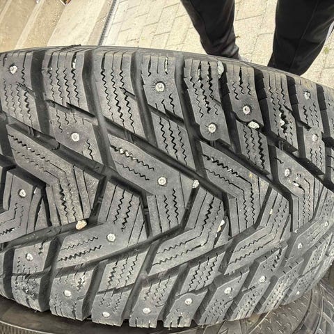 Dekkene fremstår som nesten nye med svært lite slitasje. Ingen skader eller feil. Har stått lagret tørt.
