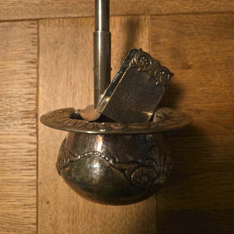 To sett Askebeger med Tiedemanns Tobak-motiv i blått og hvitt m/ 2 stk hyller. Har lagt nedpakket i kasse. Tallerkenene har trykk med ulike klassiske Tiedemanns-design og maritime motiver. Egner seg som samleobjekter eller til dekorasjon, for eksempel på kjøkken eller i stue. Laget i keramikk/porselein fra Porsgrunn med rund form og kantdekor i blå farge mot hvit bunn.