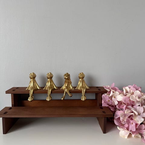Vintage dekorfigurer kaniner i messing . To sittende kaninfigurer utformet for å henge på hyllekant eller lignende flate. Passer som innredningsdetalj i stue, gang eller barnerom, og kan brukes både til helårsdekor og sesongdekor som påske. . Selges som sett med to figurer. H: 12 cm. 🔎søkeord: messing, vintage, retro, pynt, interiør, dekor, dekorasjon, diverse, stue