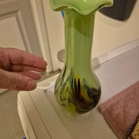 vase med sølvfarget, blank overflate. Passer til dekorasjon med blomster eller grener, og kan brukes både som borddekorasjon og gulvvase avhengig av plassering. Enkel, sylinderformet utforming som gjør den lett å kombinere med annet interiør.