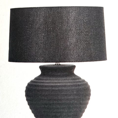 Vegglampe i metall med rektangulær veggbrakett og rett lampearm. Lampen leveres med svart lampeskjerm i tekstil. Passer til montering på vegg i for eksempel stue, soverom eller gang. Sokkel for standard lyspære (se merking på lampen for riktig type og maks watt). Skjermen gir et dempet og direkte lys nedover og oppover avhengig av valgt pære.