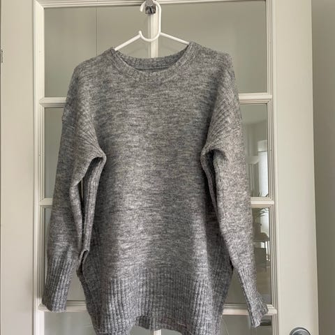 Strikkegenser fra H&M i koksgrå farge med splitt i sidene.