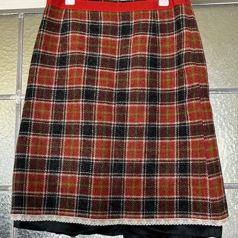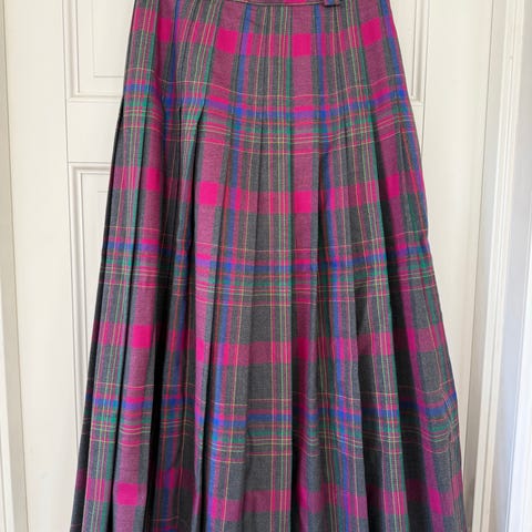 Vintage rosa skjørt i ull og viskose med rutemønster.